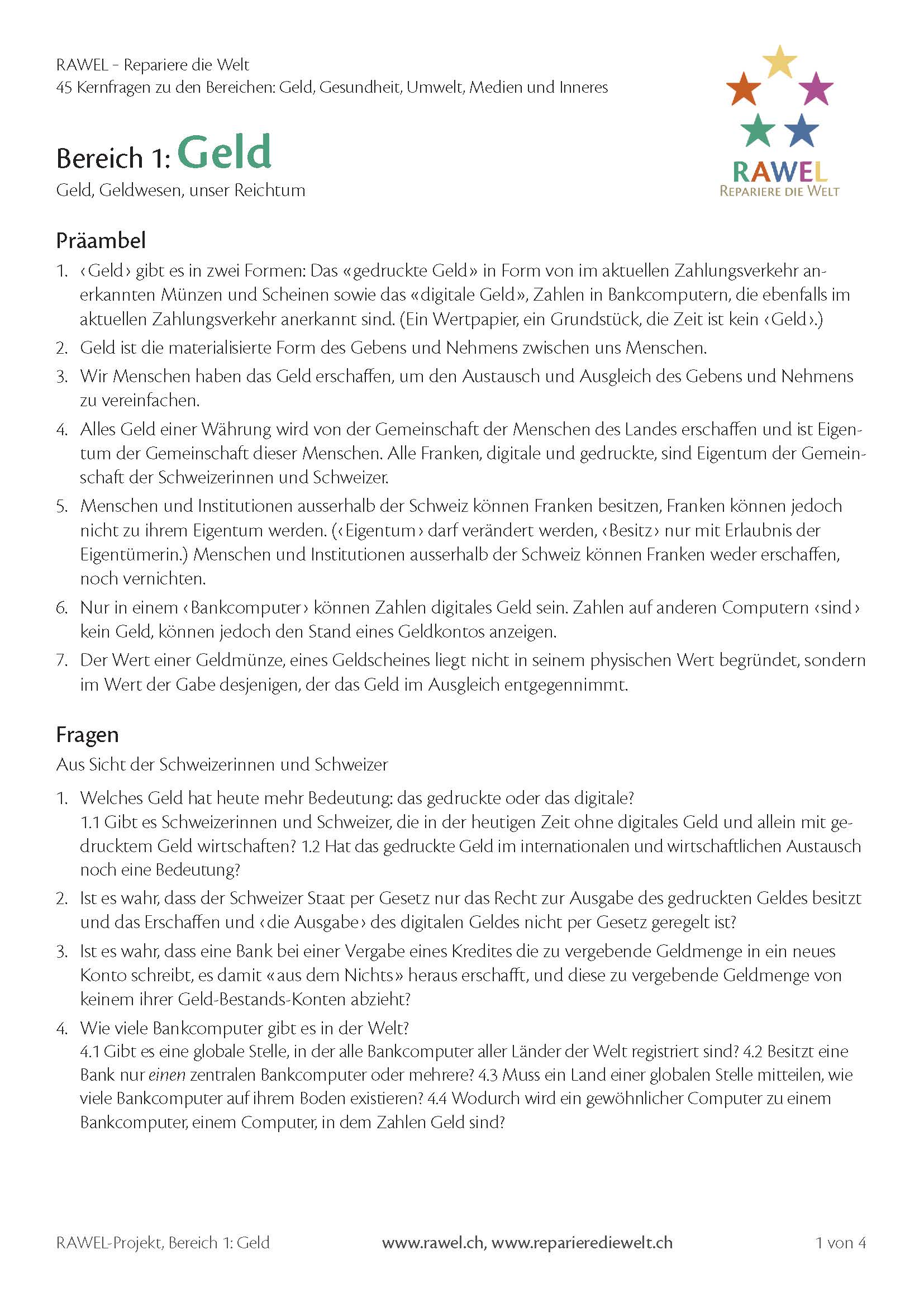 9 Kernfragen zum Thema Geld, Geldwesen, unser Reichtum